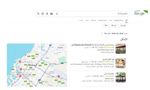 Google search results (Local pack) for the search query "مطعم في الشارقة" You need to optimize for both. That means: